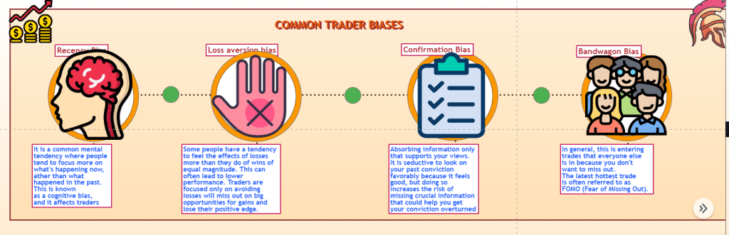 These biases, as you can see, are of a temporary. Which, as we have discovered, is extremely risky for our trading because it is a long-term game in which we allow our edge to develop gradually. We are aware that in order to succeed in trading, we must take the long view and trust the probability. You will ruin your trading and your trading account if you fall to these biases in the short run. But by becoming aware of them, you can take some action to change your frame of reference in the present and prevent these biases from ruining your trading performance.